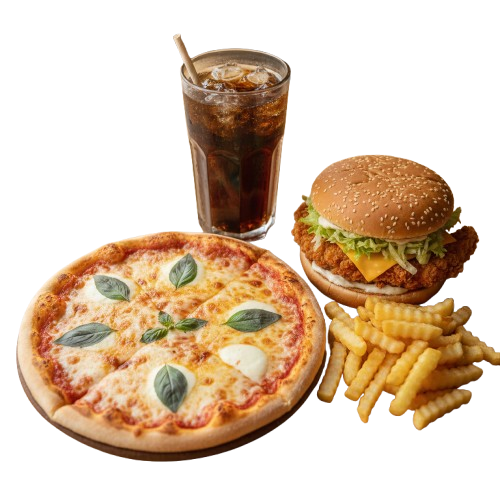 Feast on Deal 3: 1 small, cheesy pizza, 1 crispy Zinger Burger, golden fries, and a refreshing 300 ml drink—a complete meal packed with flavor and satisfaction.